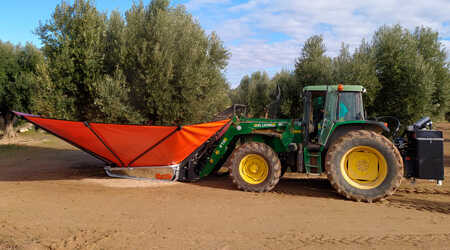 Estas máquinas van montadas en los brazos de la pala. Además están pensadas y diseñadas para que puedan recolectar todo tipo de árboles (almendros y olivos).